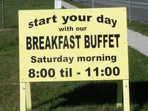 The menu usually includes pancakes, sausages, Egg casserole, Tater Tots, and… our famous French Toast Casserole. And just to balance things off a bit, we also supply a fruit cup.