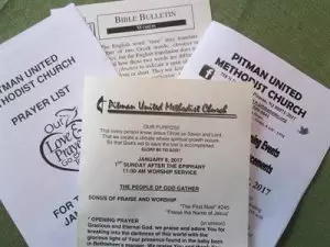 Every week, our office pulls together information that is submitted for publication and then develops bulletins that are handed out in church. These bulletins are more than a simple “program” to guide you through the worship service; they are “chock full” of nuggets that can carry you through the week. The bulletin contains announcements, prayer lists, and even a “Bible Bulletin” section that gives a quick study on a particular topic or Bible book.