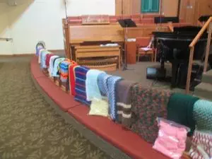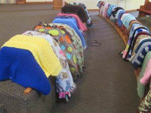 The blankets, shawls, and other items help glue our own church family together….