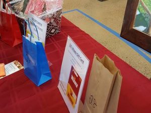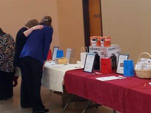 Before the concert got underway, tables in our Fellowship Hall were filled with various donated items, such as gift certificates to local restaurants and merchants, gift baskets of all sorts, art work, wood work, a vacuum cleaner, and even a dog bed with treats for “Fido.” Also on the tables was a basket allowing visitors to place a bid on the items. The highest bidder was given the chance to make a purchase at the bidded price.