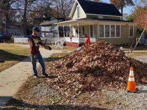 But on this chilly afternoon in November, the Grove was thronged with Mounds of Leaves. So our Men’s Fellowship group took on the task of raking up these leaves and cleaning up the area, as part of Pitman’s Clean Communities.