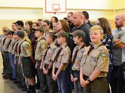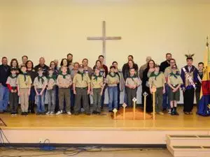 At the end of the event, parents posed with the newest members of Boy Scout Troop 55…