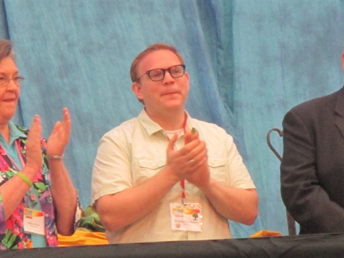 Former PUMC Associate Pastor Rev. Chris Heckert during conference staff acknowledgement on Saturday morning.