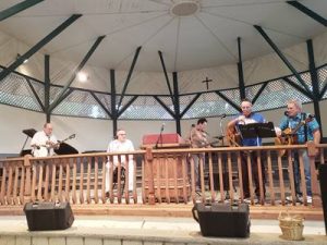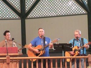 The One Way Express, a blue grass gospel group from the New Brooklyn United Methodist Church (in Williamstown NJ), opened the service. They are long time regulars at the Pitman Camp Meeting, but their music always brings a different sound and fresh perspective to our worship. They opened the service with songs such as “This Land is Your Land,” “If We Forget God“, and “I’ll Fly Away.”