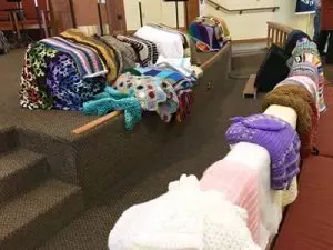 One of the unique ministries at PUMC is our “Thread and Yarn” groups. We have two groups crafting warm items to be given to anyone who needs them. Hooks and Needles makes items with yarn, and Scrappy Quilters quilts blankets.