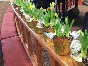 This army of daffodils doesn’t remain on the church’s alter. They get planted. They go out into the community and beautify our gardens in homes across the whole town. They nourish themselves in the soil, and prepare themselves for action.