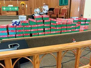 On Sunday 11/14/21, we brought our boxes to church and laid them on the alter. The Youth Group, Our Father’s House Preschool, and others added to the collection of boxes, and over 100 shoeboxes were delivered to Samaritan’s Purse for distribution across the globe.