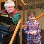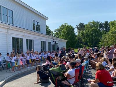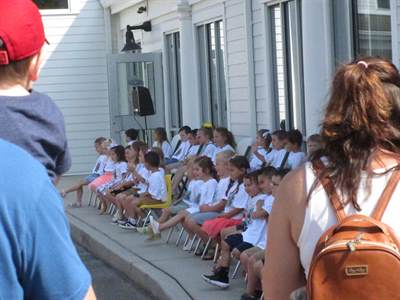 A Sound system, a keyboard, and two rows of chairs were set up on the sidewalk outside of the Fellowship Hall doors. And then 40 Pre-K children filled the chairs and cheered the hearts of their parents and all who gathered in the parking lot. The kids waved, danced, and sang songs demonstrating what they had learned during the year.