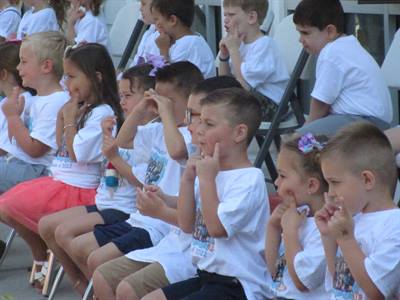 Each child was given a lawn sign to remember the event. After the program, the kids stood in front of their sign and their parents picked them up. The celebration then moved to Atkinson Park (located about a mile from the church).