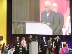 On Monday afternoon we recognized the clergy who retired this year. This included Pastor Jim (Rev. Jim Bolton, our pastor from 2014-2024). The name of each retiree is called as they enter the stage And then, the newly ordained elders are called to the stage. These are the people who were ordained during the service on Sunday evening.