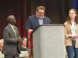 Vasanth Victor (chair of the Council of Finance and Administration) presented a balanced budget for 2025 which has a slightly lower apportionment rate (15.2%) than last year (15.3%). Despite not raising apportionment rates, the 2025 budget envisions an income almost $600,000 higher than 2024’s budget. Part of that increased income will result from our affiliation with the Eastern PA Annual Conference.