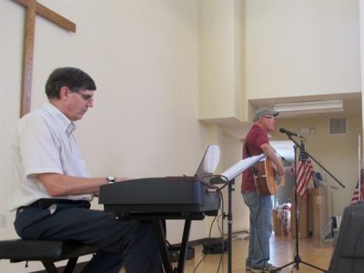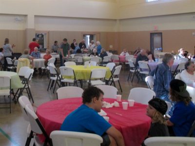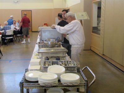 The buffet was prepared by our United Methodist Men’s Fellowship. It consisted of French Toast casserole, sausage, eggs, gravy and biscuits , tater tops, and yes, even some fruit to balance things off. Live music was also provided, and we served over 140 people.