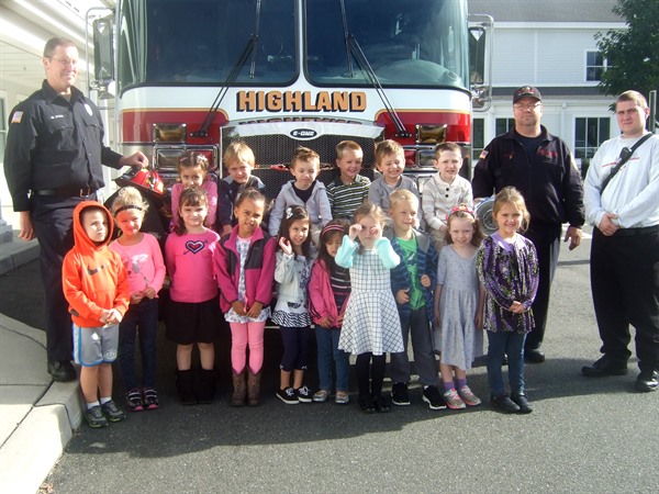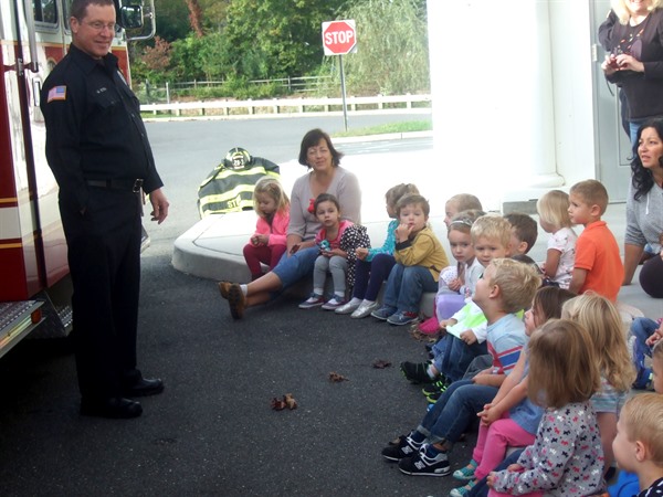 As part of Fire Prevention Week, a big red fire truck pulled up to our church. Yes, our church does have a sensitive spot for fire trucks, but no- this wasn’t an emergency. Instead, the volunteer firefighters from Pitman’s Highland Fire Company were on hand to teach the kids about fire prevention and to show them how they fight fires.