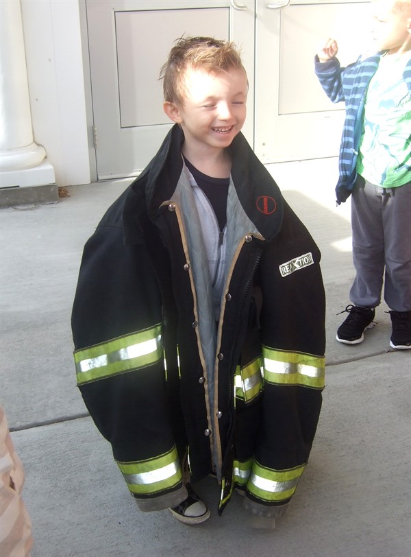 The kids had a chance to check out the truck and even to try on a raincoat…