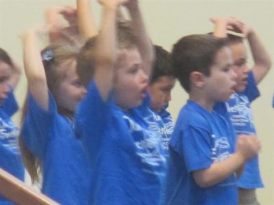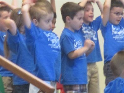Nope- we didn't play the traditional "Pomp and Circumstance." This was a time to let kids be kids! The kids waved, bounced, and sometimes called out to their parents as they exerted their innocent energy by singing a series of songs. The songs demonstrated their "pre-school knowledge", but more importantly their voices demonstrated their innocent and trusting faith. Here are a few of the songs they sang...