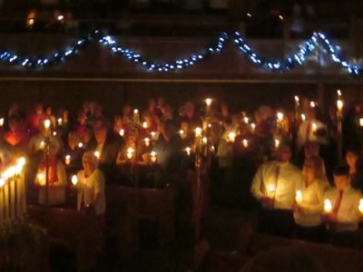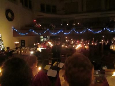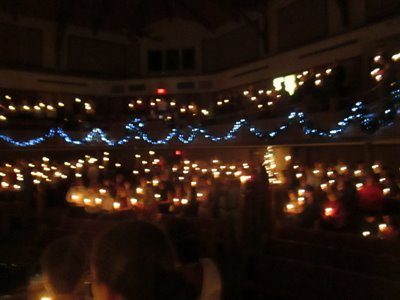 Here are some pictures from the 7:00 service… most of which are taken from the choir loft. The view of the candles from the loft on Christmas Eve is one of the main reasons to join the choir!